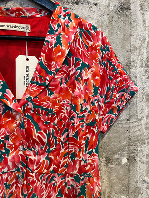 "FLORIE" . Super stylish mid-length dress with allover floral print design- perfect from day to night; short sleeve and side seam pocket entry detail; flattering banded collar design with button-down closure; shell and liner 100% polyester; featured is a size small.