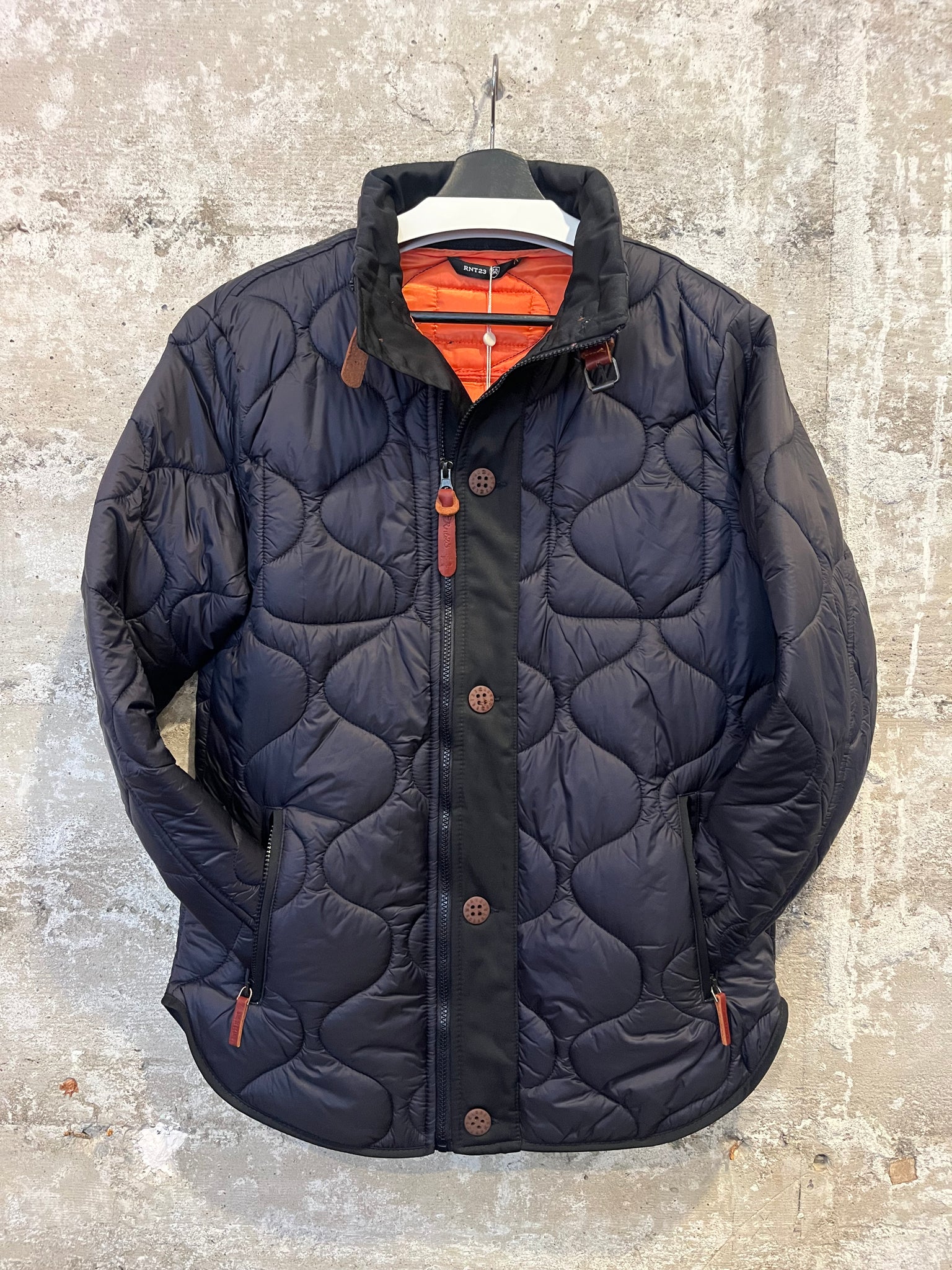 "MARTY” . Lightly padded, versatile outerwear essential for the modern gentleman; Crafted with meticulous attention to detail, this coat strikes the perfect balance between style and functionality. Its lightweight padding provides just the right amount of insulation, keeping you comfortably warm without adding bulk. The sleek zipper-up design offers ease of wear and a streamlined silhouette, while the high-quality materials ensure durability and longevity. Whether you're navigating the urban jungle or embarking on outdoor adventures, this coat is your go-to choice for effortless sophistication and practicality; dual button and zipper front closure; side pocket detail; buckle trim at neck for a super fashionable detail; 100% polyester; featured is a size Medium.